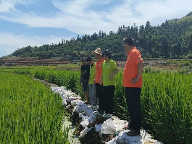 实践队在参观农场的过程中,发现已经处于灌浆期的稻田严重缺水,田间土地已出现干旱开裂,灌溉渠没有充足的水源,干旱叠加高温天气将严重影响水稻后期的结实,造成减产。实践队通过现场考察,认真研究稻田周边水源情况后,建议将稻田附近的水沟内少量的山泉通过塑料软管引进水稻田,采取轮流灌溉,在一定程度上缓解稻田旱情,提高水稻后期结实率和饱满度,减少产量损失。